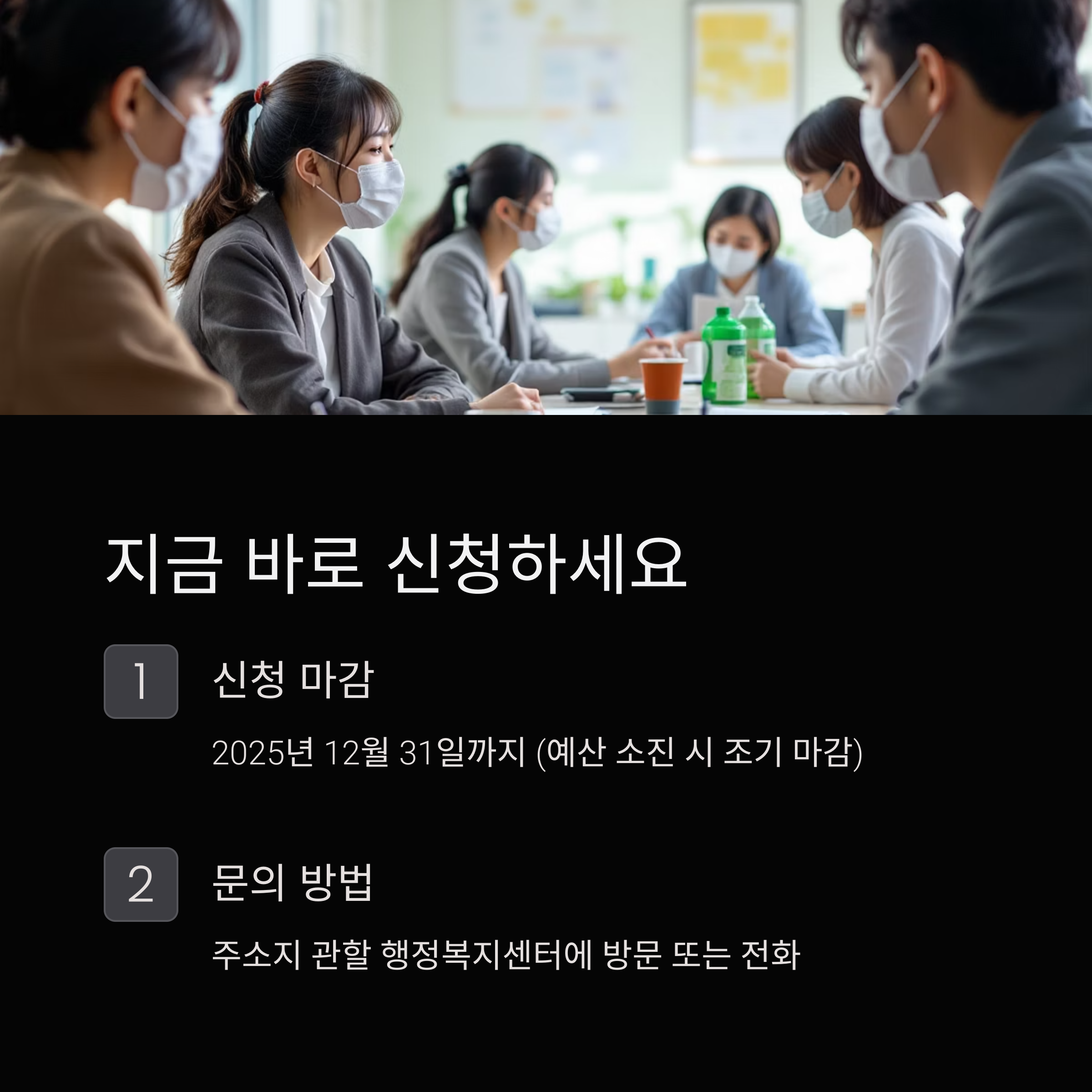 놓치지 않고 혜택을 받기 위해서는 지금 바로 주소지 관할 행정복지센터에 문의하여 자격 여부와 준비 서류를 확인하시기 바랍니다.