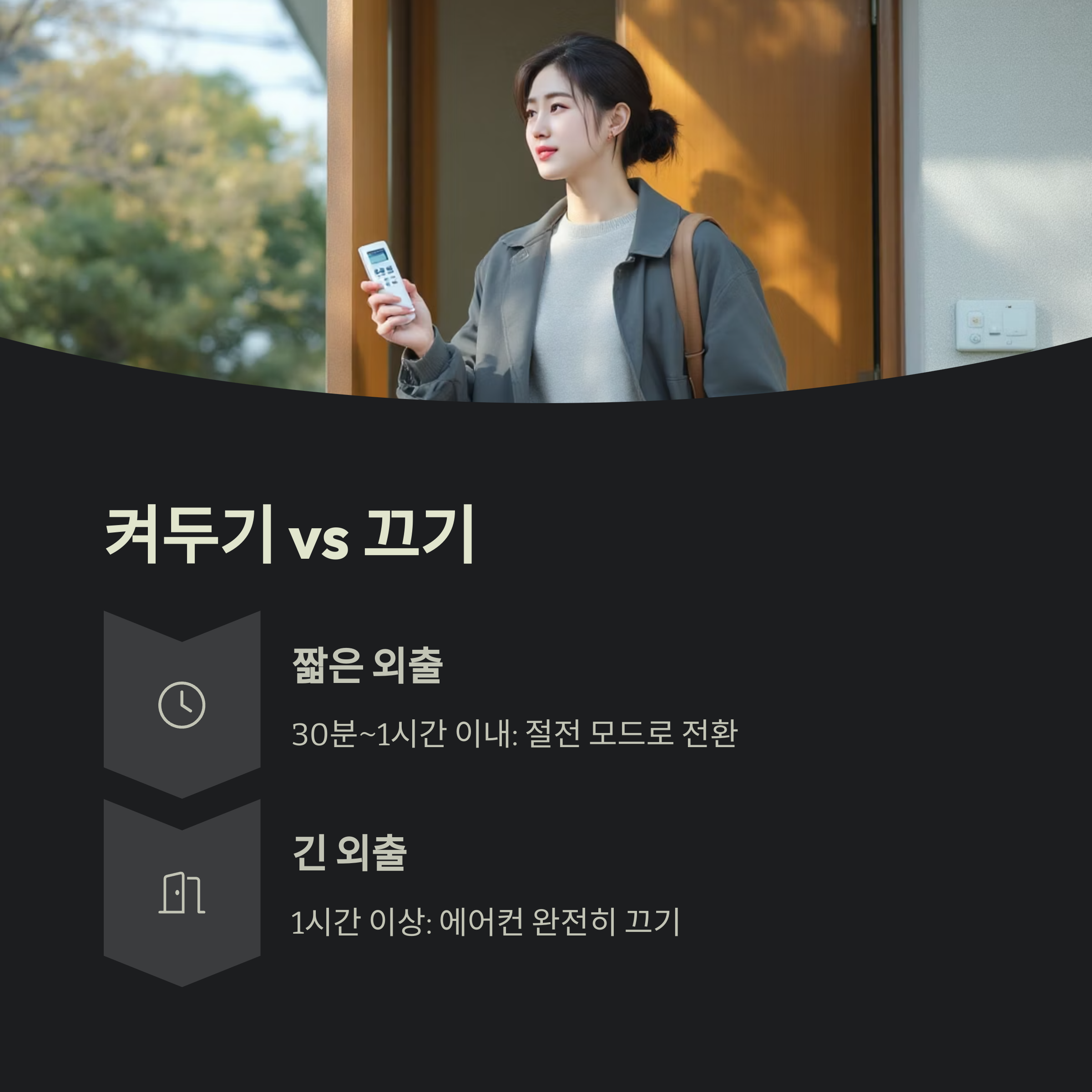 30분~1시간 이내의 짧은 외출이라면 에어컨을 끄지 말고 절전 모드나 외출 모드로