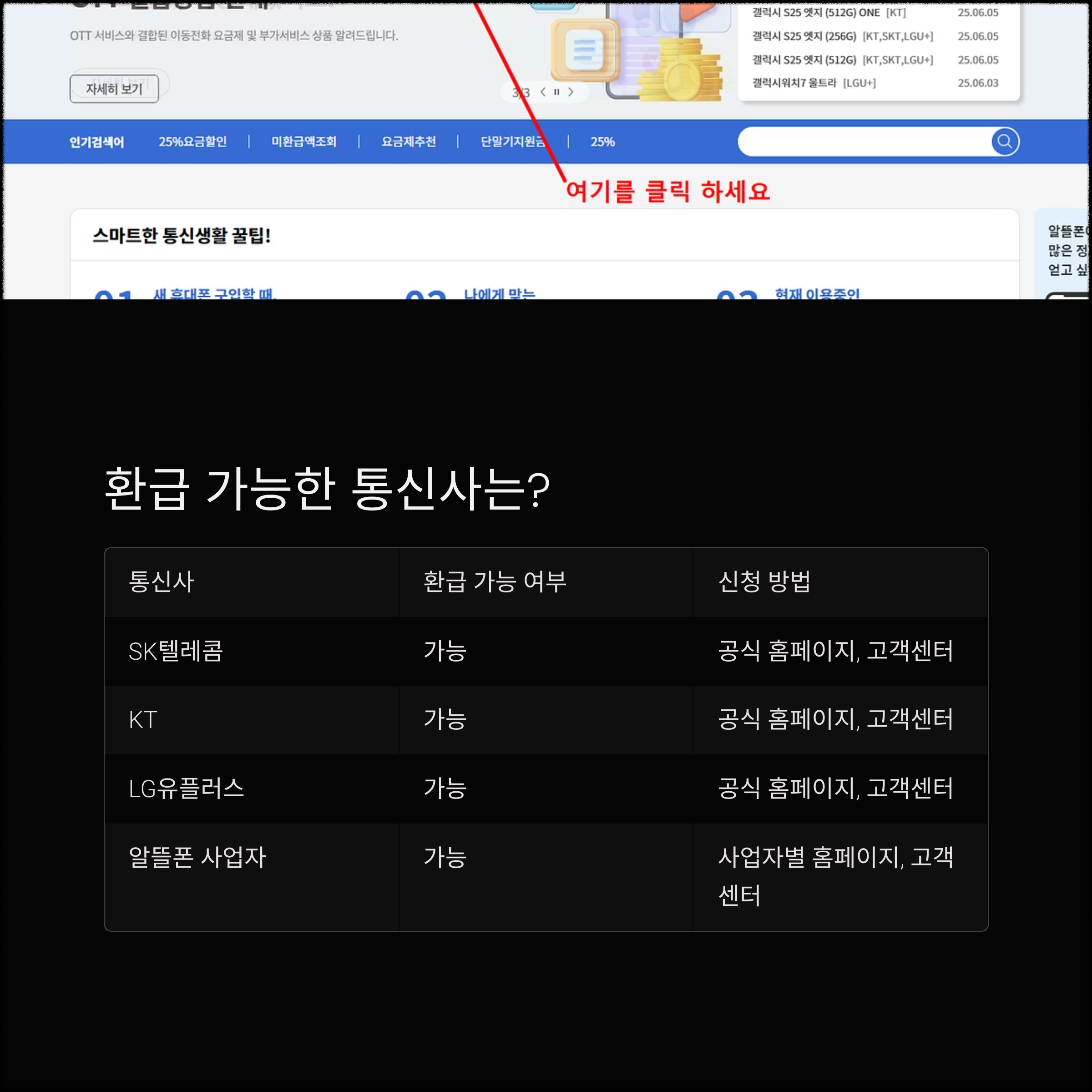 | 통신사 | 환급 대상 여부 | 환급 신청 방법 |