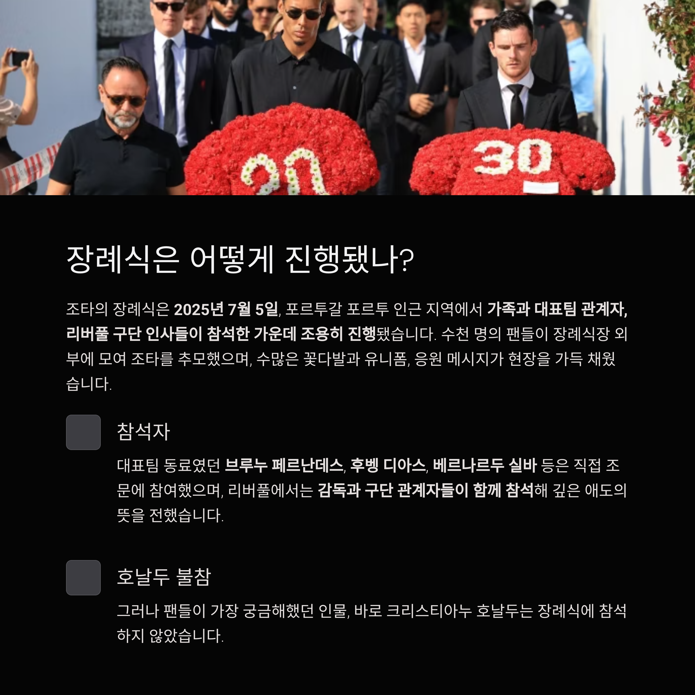 그리고 이 글을 본 지금, 리버풀 팬 커뮤니티나 포르투갈 대표팀 공식 페이지에 방문해 조타를 위한 추모 공간에 함께 해보세요.