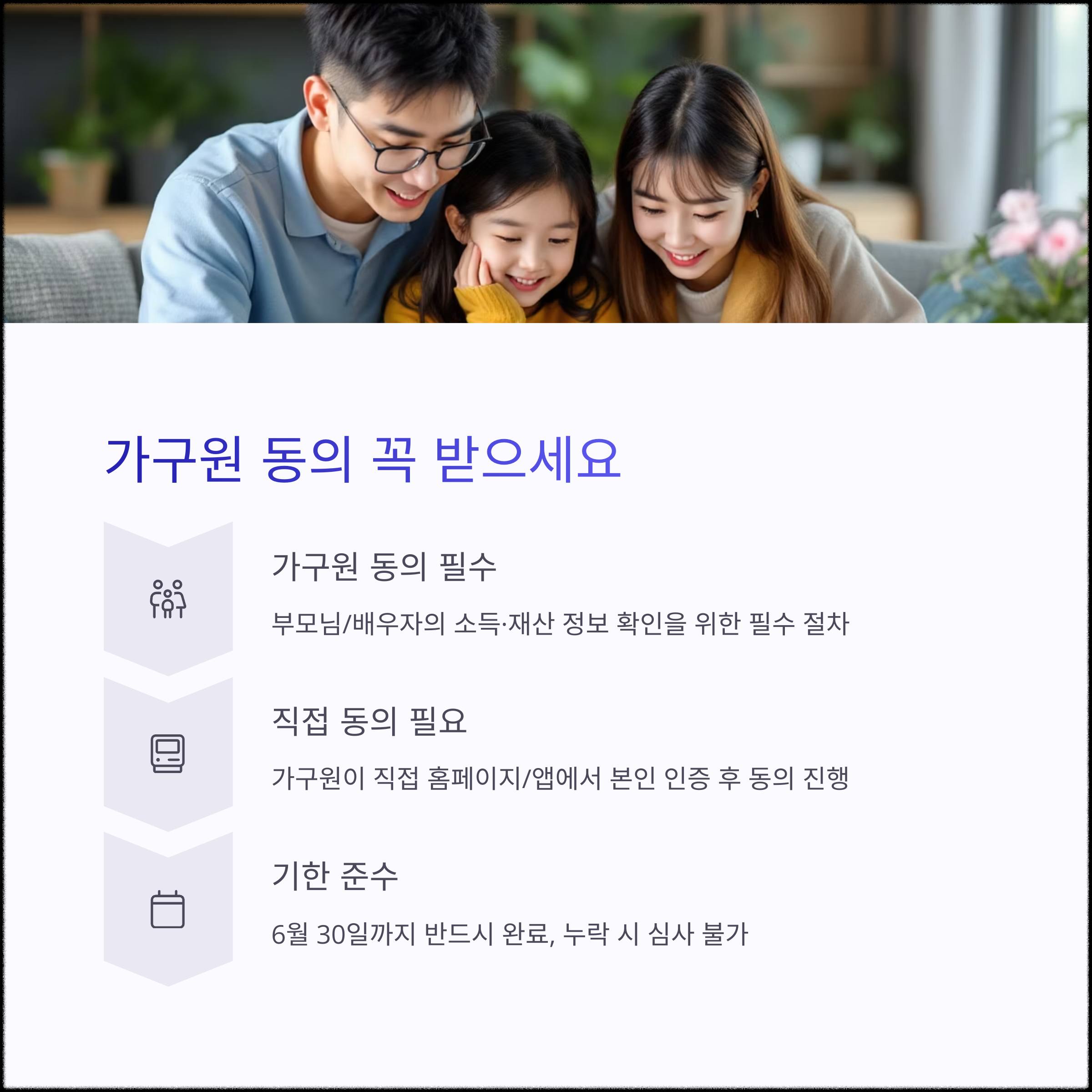 만약 가구원 동의가 누락되면 소득구간 산정 자체가 불가능해져 심사가 전혀 진행되지 않습니다. 따라서 신청과 동시에 가구원들에게 동의 절차를 안내하고, 6월 30일 마감일 전에 반드시 완료되도록 관리해야 합니다.