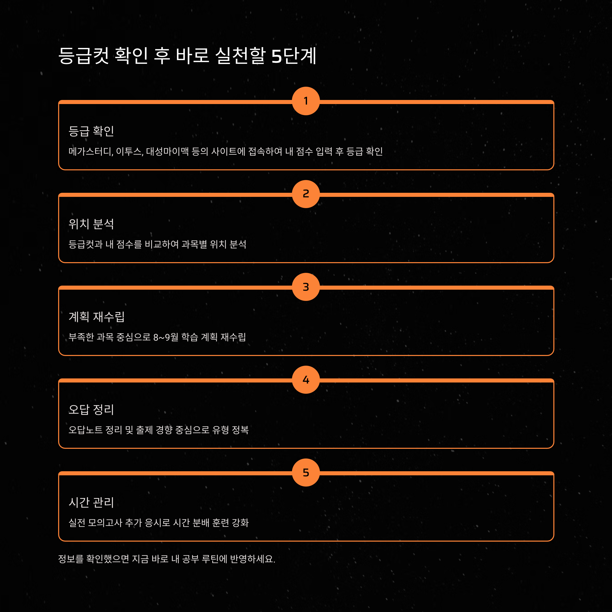 이러한 일련의 조치들을 실천하지 않으면, 단순한 등급컷 확인은 아무 의미가 없습니다. 정보를 확인했으면 지금 바로 내 공부 루틴에 반영하세요.